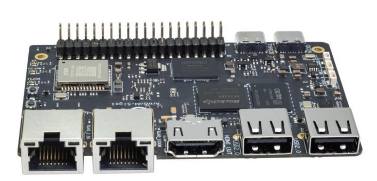 该机撑握 Wi-Fi 6 和蓝牙 5.2,I/O 方面配有 1 个 HDMI 2.0 接口、2 个千兆网口、2 个 USB-C 接口、3 个 USB-A 2.0 接口、1 个 40 Pin GPIO 接口。