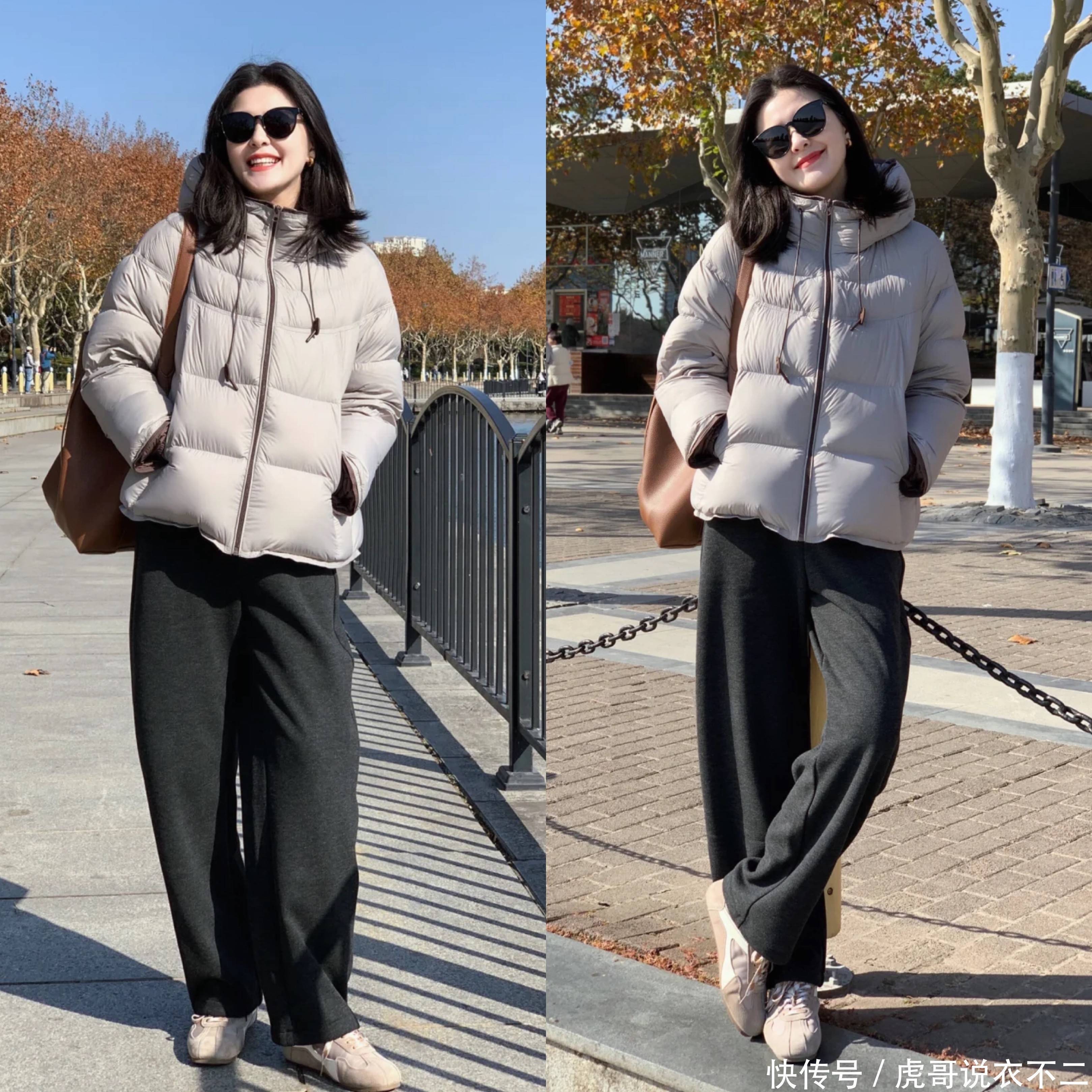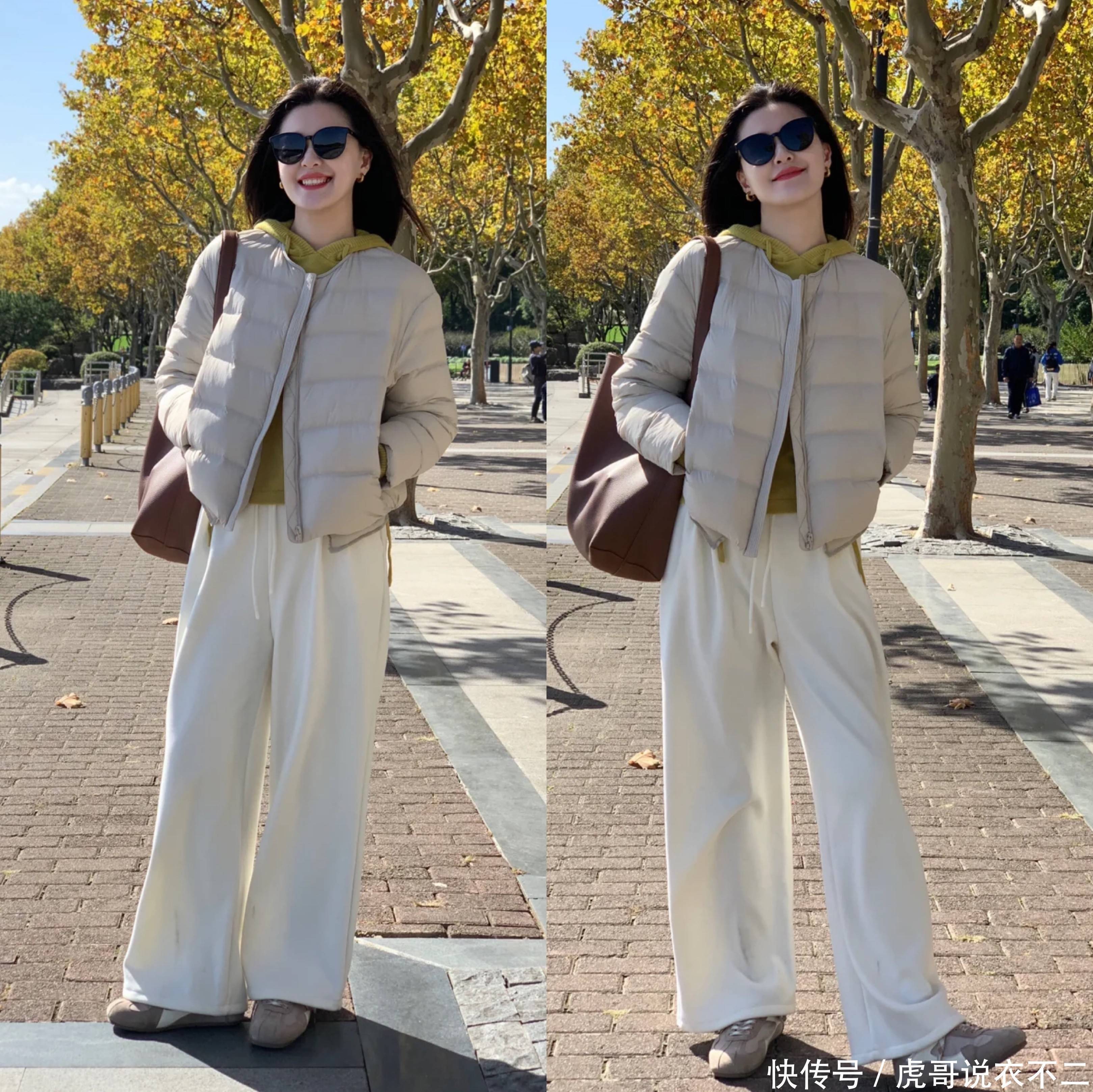 博主的这套检朴轻熟风穿搭,可谓是通勤平素王人允洽,浅灰色无领飞动型羽绒服,搭配米白色高腰阔腿裤,短+长穿搭完好适配躯壳,内搭叠穿抹茶色连帽卫衣,举座造型检朴又减龄,无形之中年青好几岁。