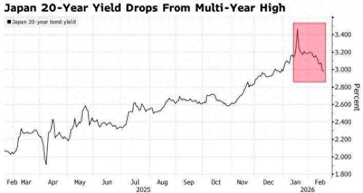20年期日本国债收益率现在游荡在2.97%摆布,较上月3.46%的峰值大幅回落,后者是自1997年以来的最高水平。这次回落是在首相高市早苗获取压倒性得手之后发生的,这或者能让她有更多时辰制定更明晰的政策和更克制的财政开销。